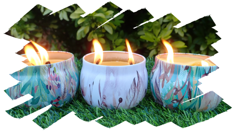 Container candles made from natural, renewable enviro-friendly and biodegradable soy wax. Long-burning without producing any toxic fumes, known carcinogens or petro-soot.