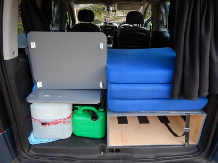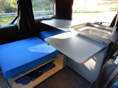 This Berlingo camping-car is designed for year-round use in the UK and overseas, in warm or cold climates and is especially snug and cosy for winter trips and touring. When not required for use as a campervan, all of the units can be lifted out in minutes and the rear seats clipped back into place*.