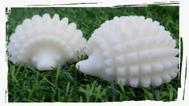 Hand-made Spike hedgehog made from luxury (non-prickly) shea butter soap. Approx 56x52x30mm, 28g. Click image for more photos.